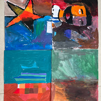 En 5° grado, el color fue el gran protagonista. Durante el segundo trimestre, los grupos se sumergieron en la Teoría del Color, experimentando con el círculo cromático y la escala de valores. A partir del análisis de obras originales, reflexionaron sobre el uso del color en el arte y lo pusieron en práctica creando vitrales coloridos y naturalezas muertas con témperas y acuarelas.