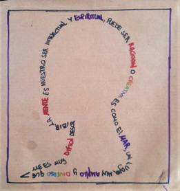 "A partir de observar el entorno y de compartir lugares conocidos o inventados, el proceso creativo comenzó. Primero hubo solo palabras sueltas, luego oraciones. Después, esas ideas, esas imágenes fueron el pincel con el cual entrar al espacio en blanco. Las palabras funcionaron como llaves para explorar la creatividad."
