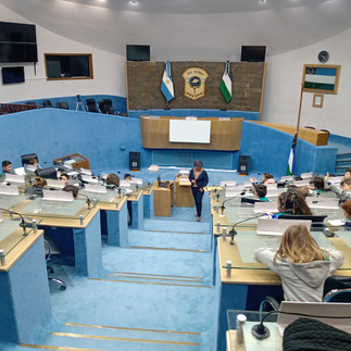 Por último, la visita finalizó en el Poder Judicial, donde fueron recibidos por el personal de Protocolo y Ceremonial y conocieron el recinto donde se llevan a cabo los juicios.